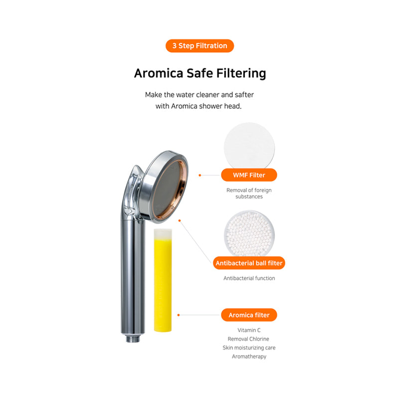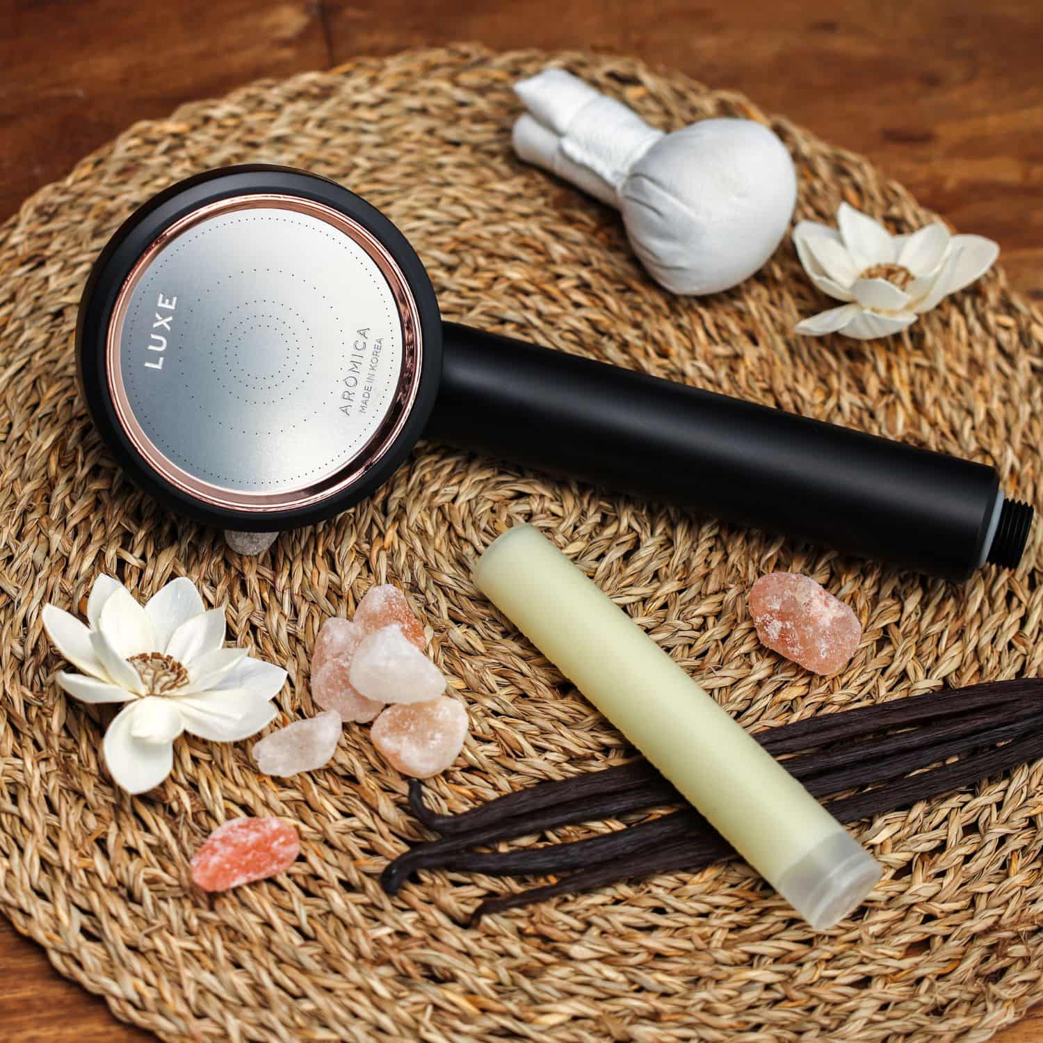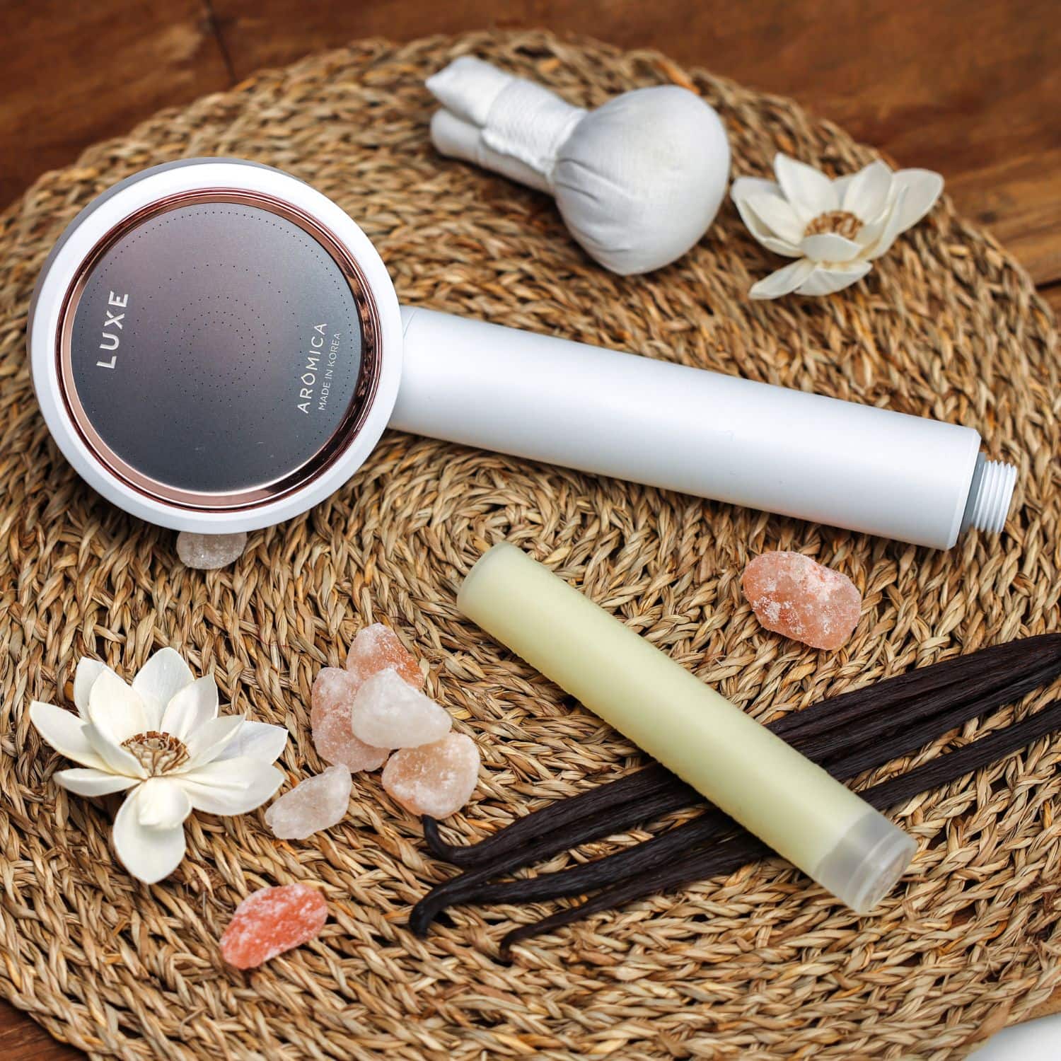 Aromica ARO LUXE – išskirtinio dizaino ir funkcionalumo dušo galvutė su pažangiomis vandens taupymo, valymo ir vitaminų tiekimo savybėmis.