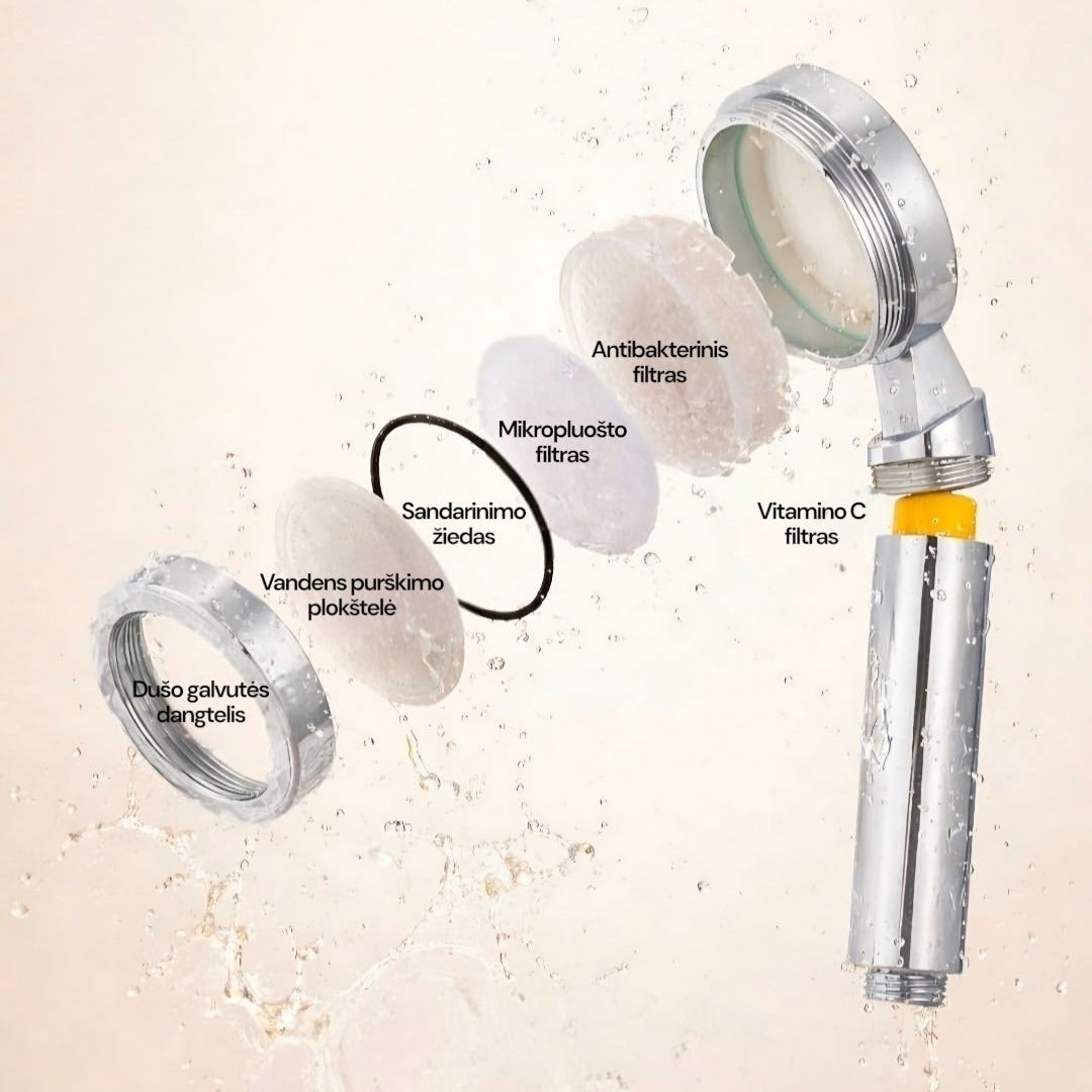 - Antibakterinis filtras: Filtras su keraminiais rutuliukais padeda apsisaugoti nuo bakterijų ir rūdžių.