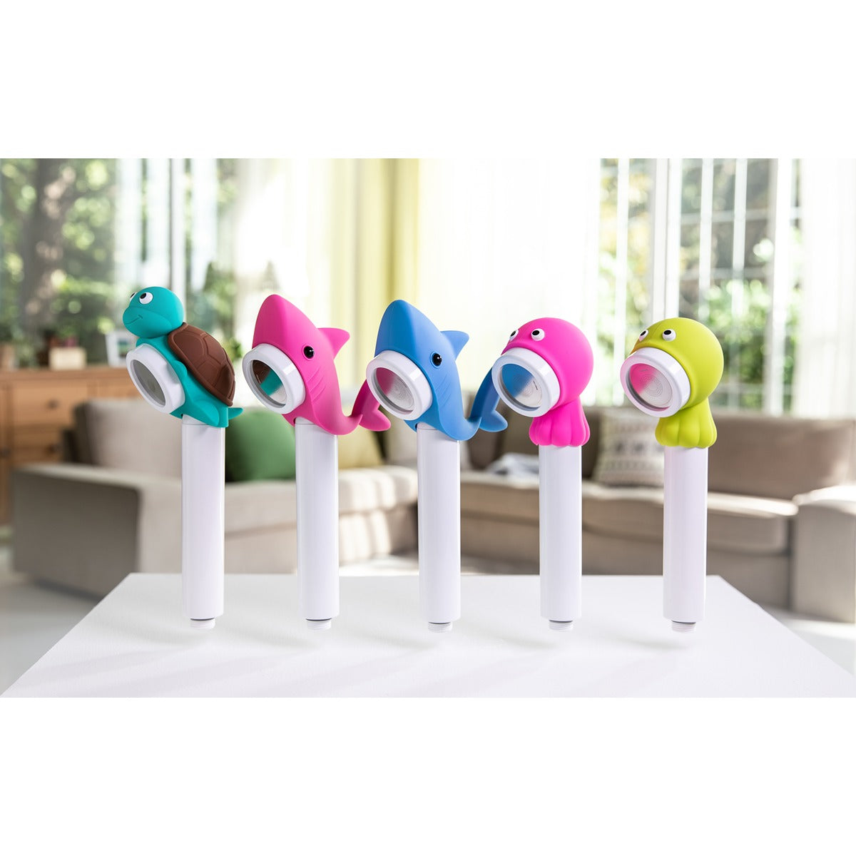 Tai „Aroma Sense“ dušo galvutė su jūrų gyvūnų dizainu (ryklys, aštuonkojis, vėžlys), kurią vaikai mielai naudoja dėl draugiškos ir linksmos išvaizdos.